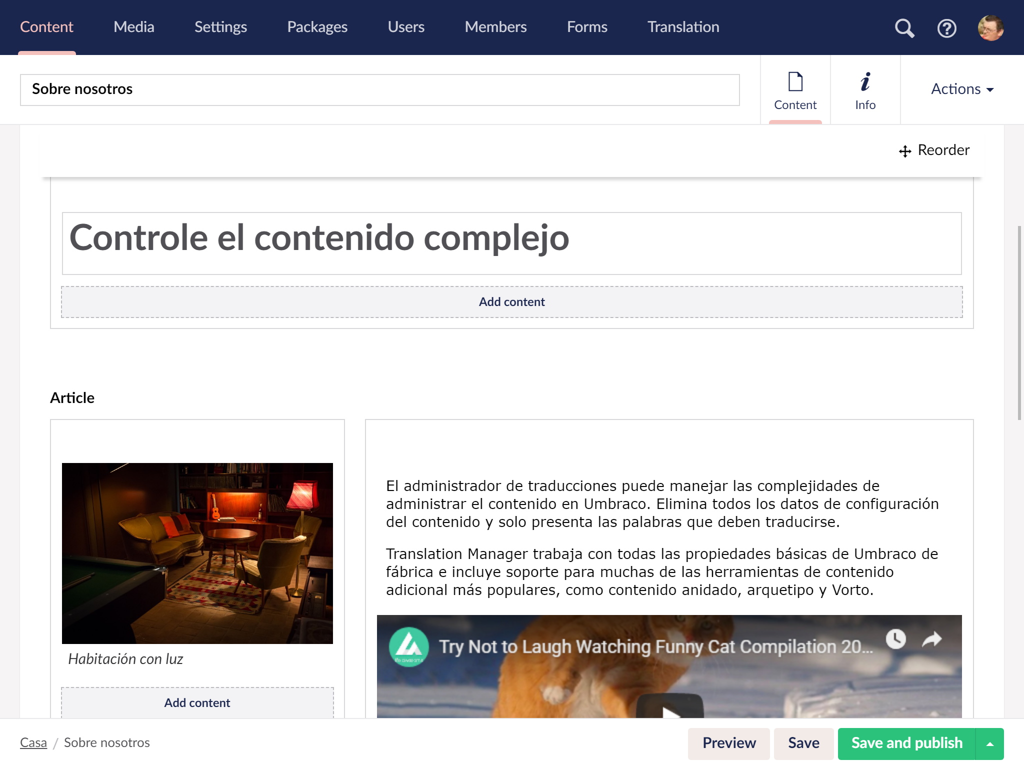 Translation Manager works with all of the core Umbraco properties out-of-the-box and includes support for many of the popular extra content tools, such as Nested Content, Archetype, and Vorto.