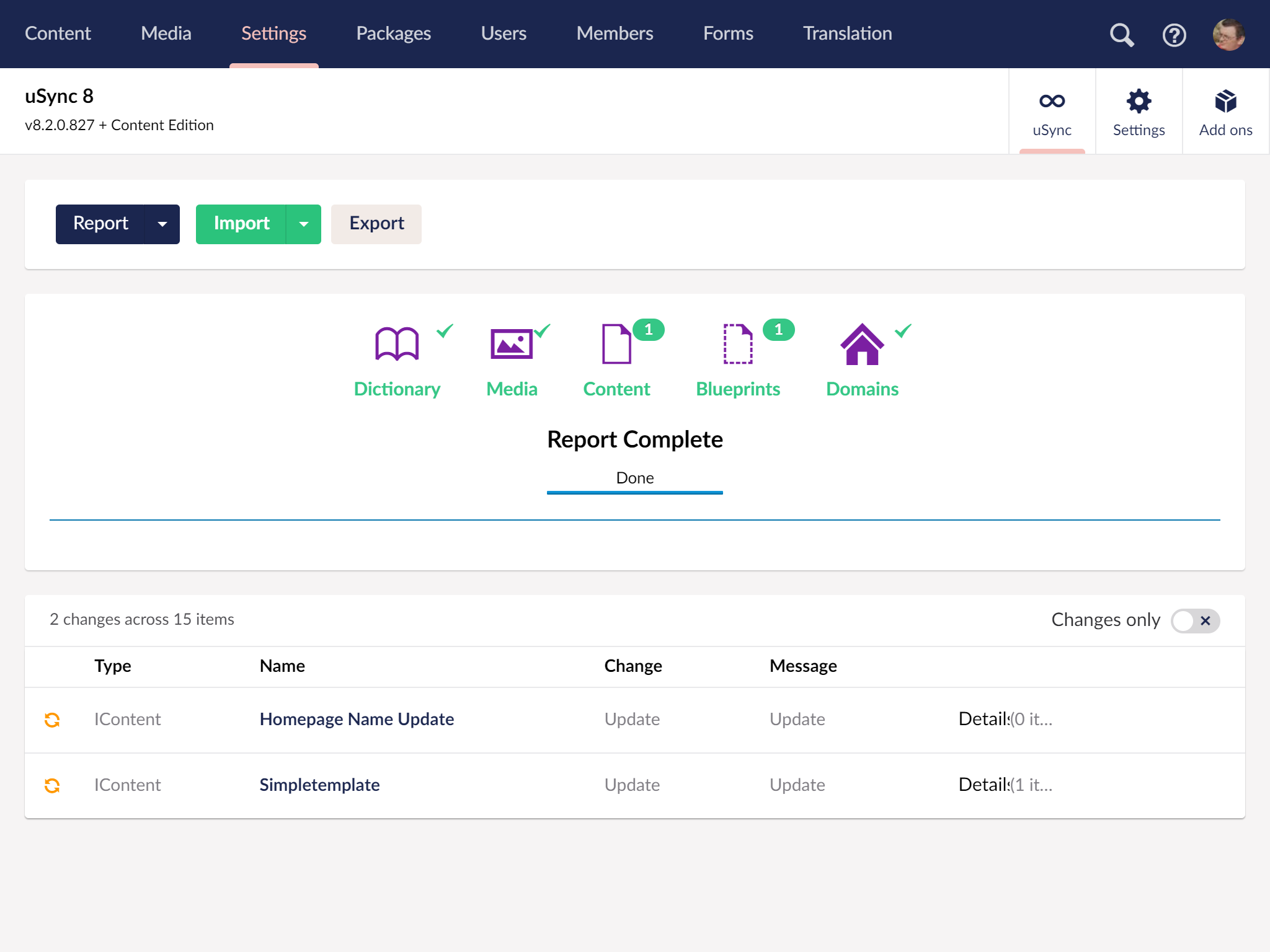 Sync Content, Media, Dictionary Items and Domain settings.