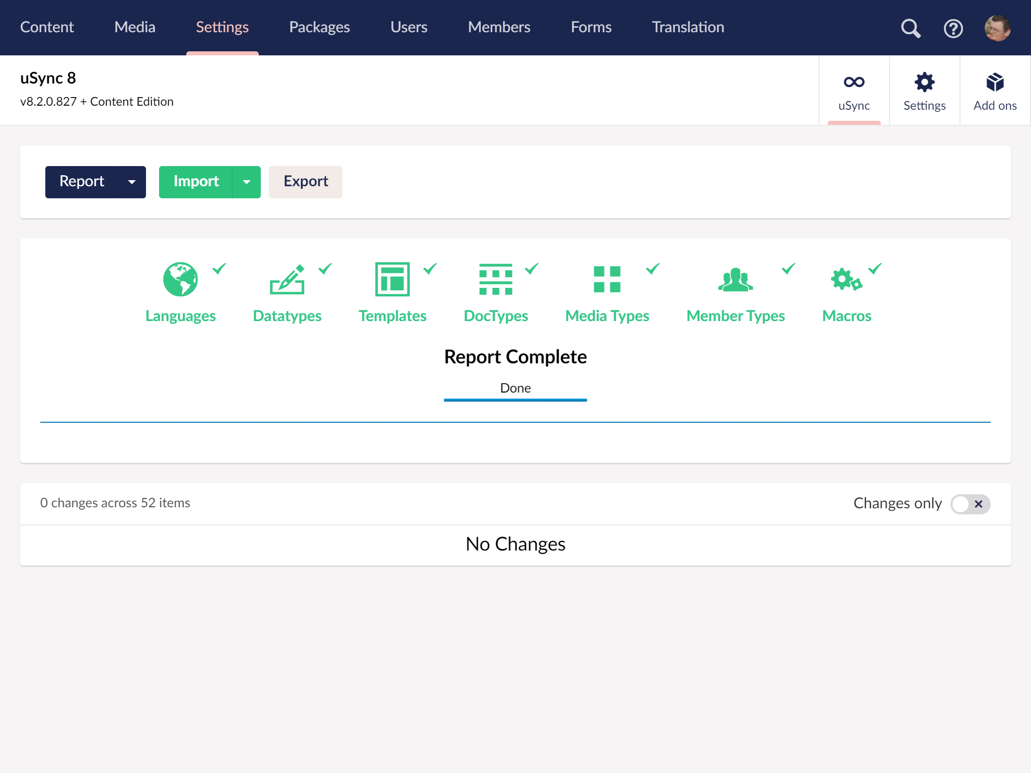uSync.Complete adds an extra five packages to the uSync family. They add the ability to sync member and users, export settings as zip files, track settings changes and publish content between Umbraco installations.